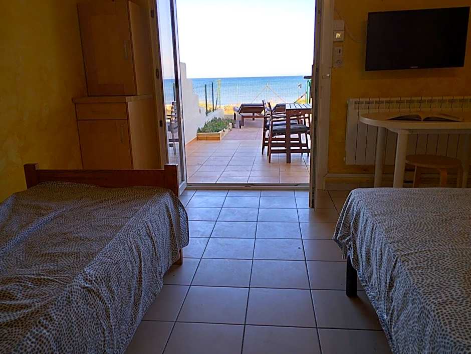 Amenities reflect a beachside mindset: beachfront access, free private parking, free WiFi, air conditioning, a private entrance, and a sun deck. A terrace, garden, and on-site kitchen facilities—with kitchenware and kitchenette—keep things convenient, while free beach chairs/loungers and direct beach access invite days by the water.