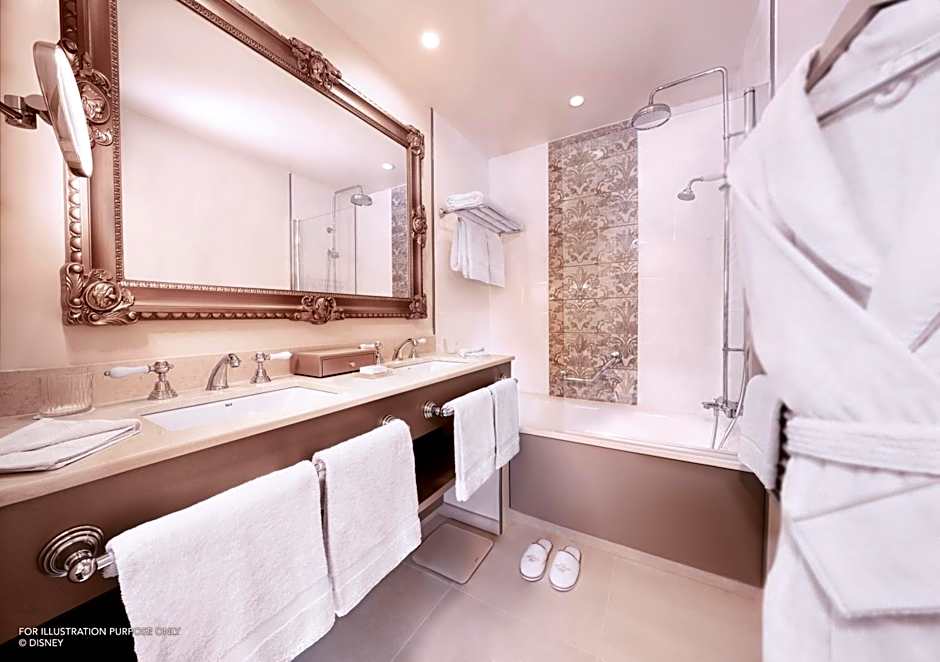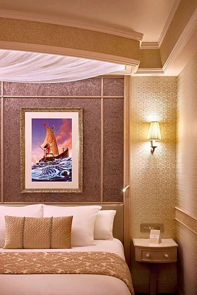 The hotel has two restaurants on site. The first is Royal Banquet, where guests can dine in the company of Mickey, Minnie, and their friends in royal costumes, offering an International cuisine. The second restaurant is La Table de Lumière, featuring a French cuisine and offering a mix of family-friendly, traditional, modern, and romantic ambiances.