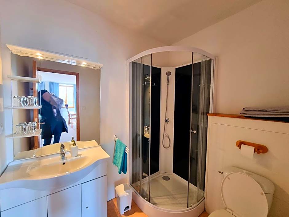 The double room provides a seating area, a wardrobe, as well as a private bathroom featuring a shower. The double room features parquet floors and heating. The unit offers 1 bed.