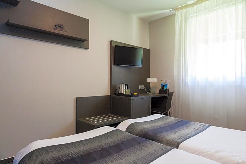 The hotel features a range of amenities to ensure a pleasant stay, including a pet-friendly policy (with extra charges), an inviting outdoor swimming pool, free private parking, and complimentary Wi-Fi access. Guests can unwind in air-conditioned rooms with soundproofing, and enjoy delicious meals at the on-site restaurant. The tranquil garden, sun deck, and terrace offer peaceful spots to soak in the French sunshine, making it a perfect choice for both leisure and business travelers alike.