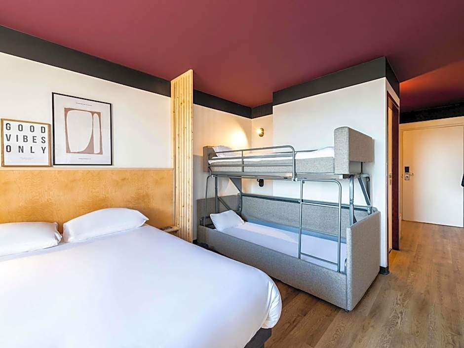 The Greet Hotel Bourg en Bresse Montagnat Sud offers various room options including POP Rooms with a double bed, two single beds and one bunk bed, and two single beds. These rooms have a size of 140 sqft and cannot be used for smoking. The hotel also has POP Family Rooms, which have a size of 248 sqft and can accommodate up to 3 adults. These rooms feature a queen size bed and two bunk beds and do not allow smoking.