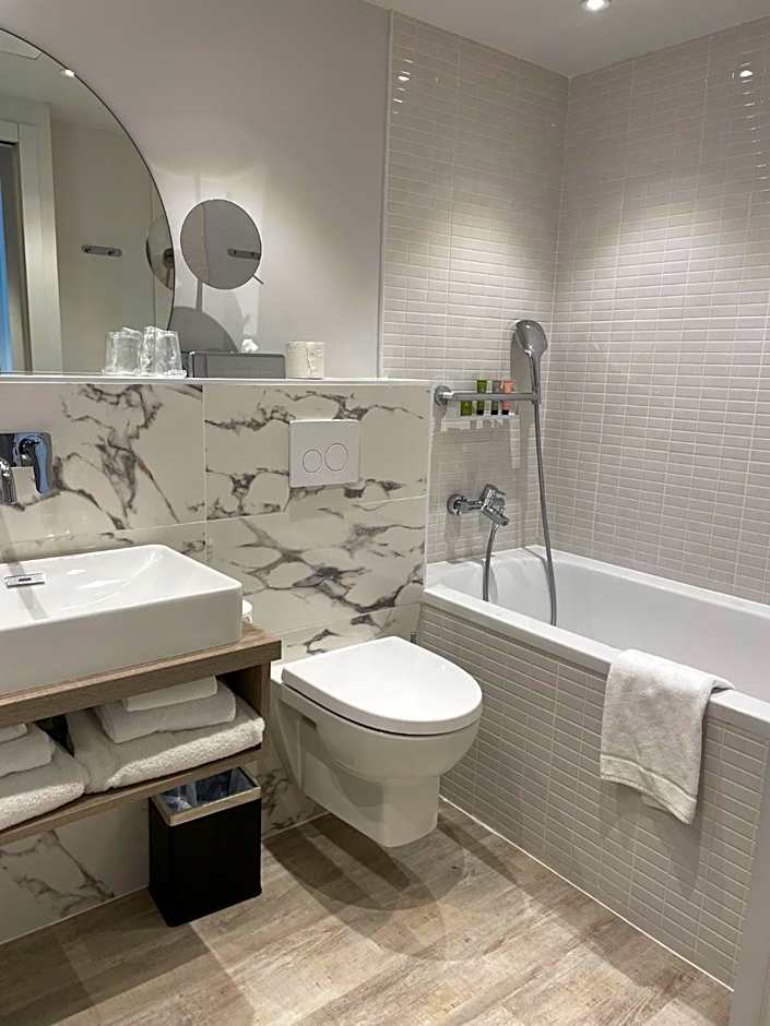 The staff were very professional, helpful and welcoming. They answered all our queries as it was our first time in Nantes. The complimentary coffee in the seating area beside reception is a lovely idea. The room had an additional sofa bed and little kitchenette which is useful for families.