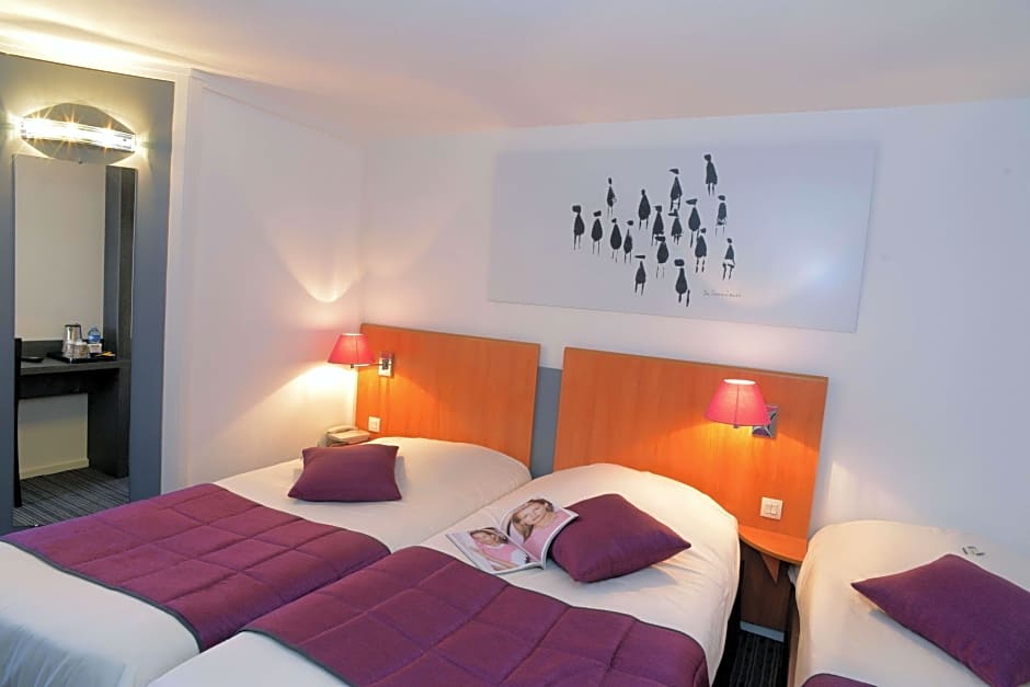 At Hotel inn Dijon-Quetigny - ex Kyriad, there are Triple Rooms available. These rooms have a size of 118 sqft and can accommodate up to 3 adults with no children. Smoking is not allowed in these rooms. The Triple Rooms have either 3 twin beds or 1 twin bed and 1 queen size bed.