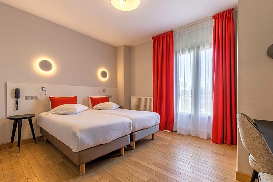 This room has a view of the street or one of the hotel's other buildings.