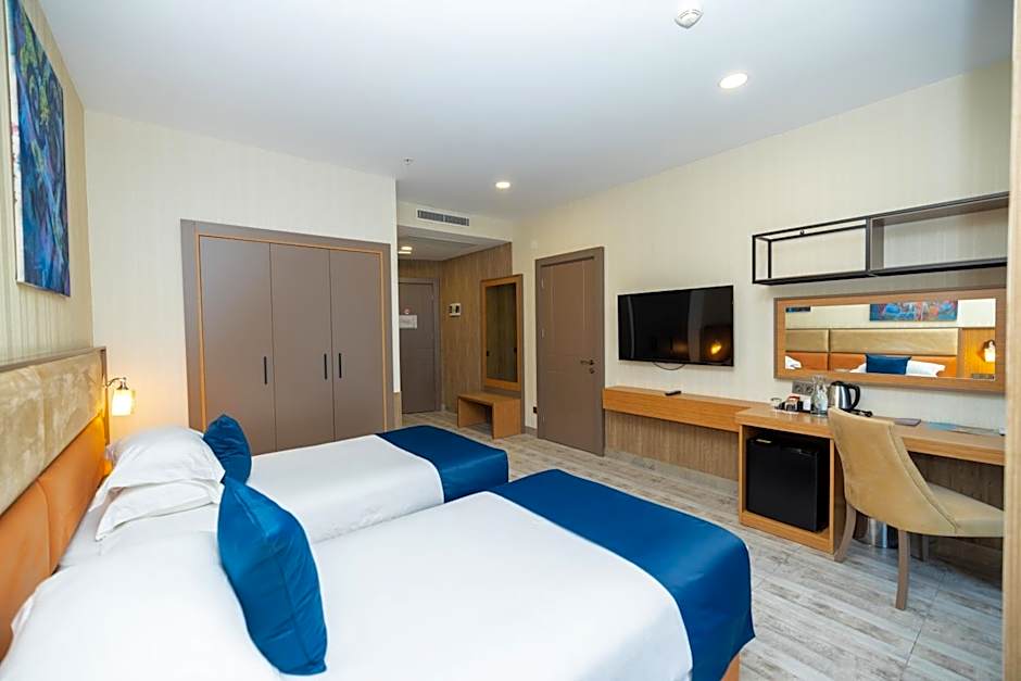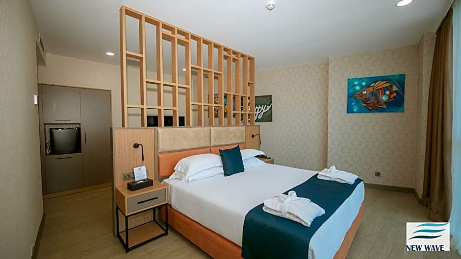 The New Wave Hotel offers a variety of room types including Standard Double Rooms, Executive Suites, Standard Twin Rooms, Family Rooms, Junior Suites, and Double Rooms with Balcony. All rooms are non-smoking. The Standard Double Room and Double Room with Balcony can accommodate 2 adults and 1 child with a double bed or king-size bed respectively. The Family Room can accommodate 4 adults and 2 children with 2 twin beds and 1 queen-size bed. The Executive Suite and Junior Suite can accommodate 2 adults and 1 child with a combination of double beds, twin beds, and sofa beds. All room sizes range from 269 sqft to 753 sqft.