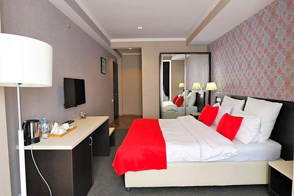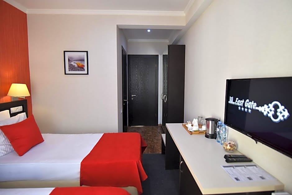 East Gate Boutique Hotel offers a variety of well-appointed rooms to cater to the needs of every traveler. From the Deluxe rooms with a comfortable king bed or a balcony to the spacious Family rooms designed for 2 adults and 1 child, there's a perfect option for everyone. Those looking for an economical choice can opt for the Economy room, while guests wanting a bit more luxury can choose the room with two beds and an extra bed, perfect for a small family. Each room is designed with attention to detail to ensure a comfortable stay while exploring the vibrant city of Tbilisi.