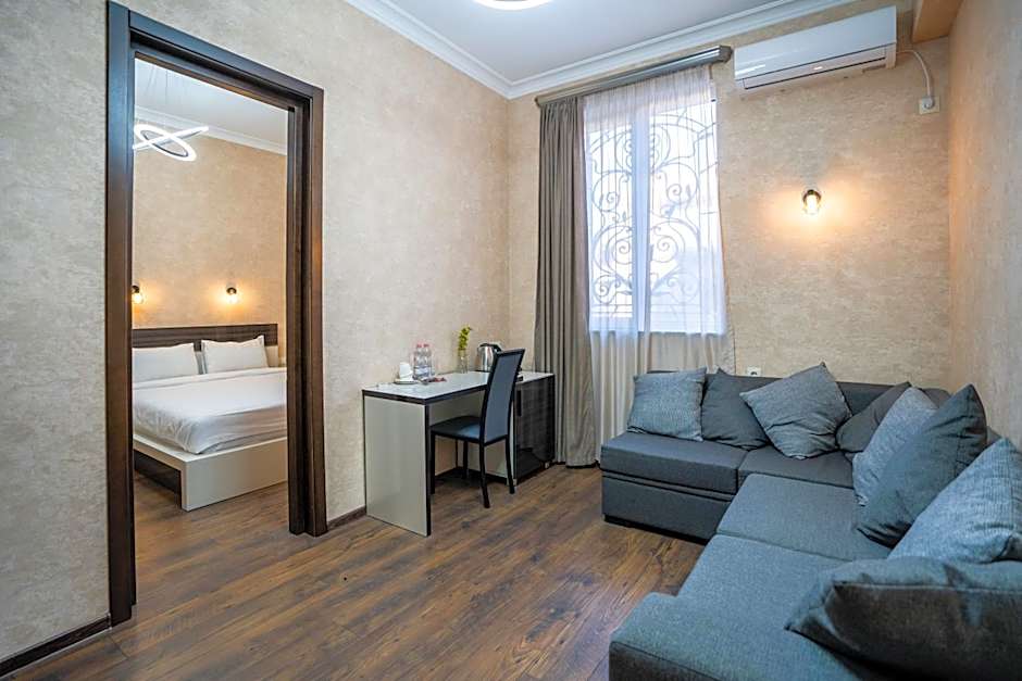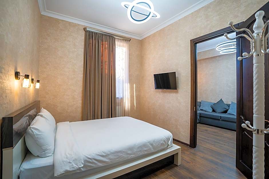 For those traveling with a larger group, the Family Room is the ideal choice. With a queen-size bed and a bunk bed, this spacious room can comfortably accommodate up to four adults. The kids will love having their own special sleeping area, while parents can enjoy a peaceful night's sleep in the comfortable queen-size bed. Plus, with a size of 377 square feet, there's plenty of space for everyone to relax and unwind after a day of exploring Tbilisi.