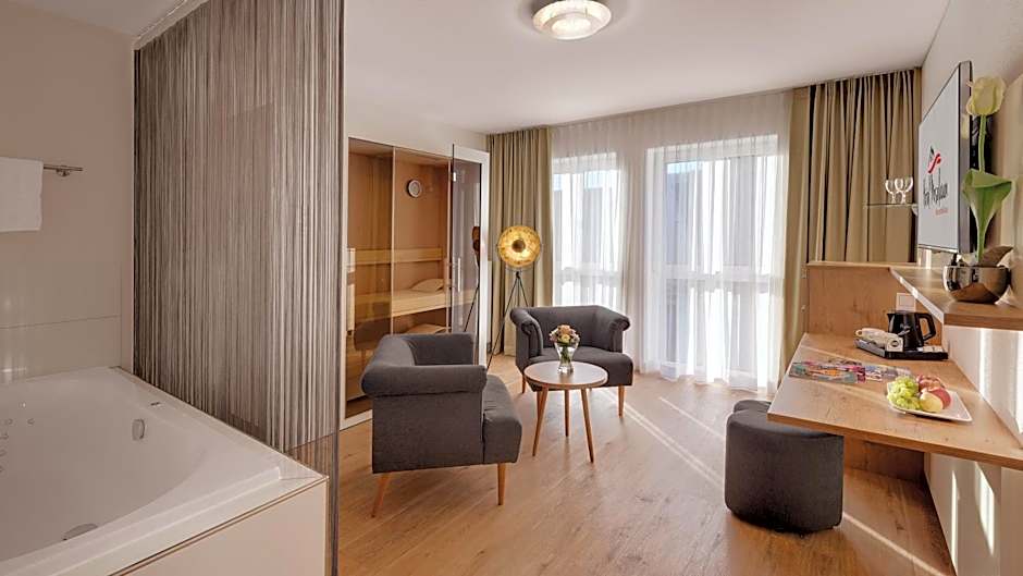 Guests will have a special experience as this suite features a hot tub, a spa bath and a sauna. This suite is consisted of of 1 living room, 1 separate bedroom and 1 bathroom with a walk-in shower and free toiletries. The air-conditioned suite offers a flat-screen TV with satellite channels, soundproof walls, a tea and coffee maker, a seating area as well as garden views. The unit offers 1 bed.