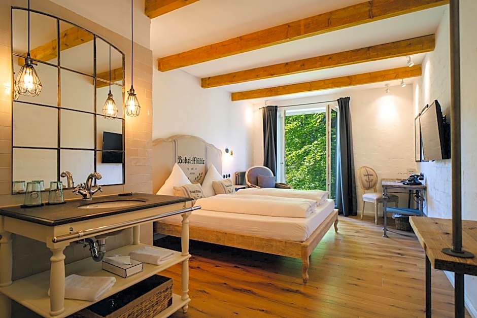 Leisure is simple and satisfying: a sauna is available free of charge, and the terrace invites lingering with views of the lake or garden. The Kaminzimmer adds traditional charm to evenings, and room service brings convenience after a day of exploration. The setting remains inviting, just from Bokel’s center, combining countryside calm with easy access to town highlights.