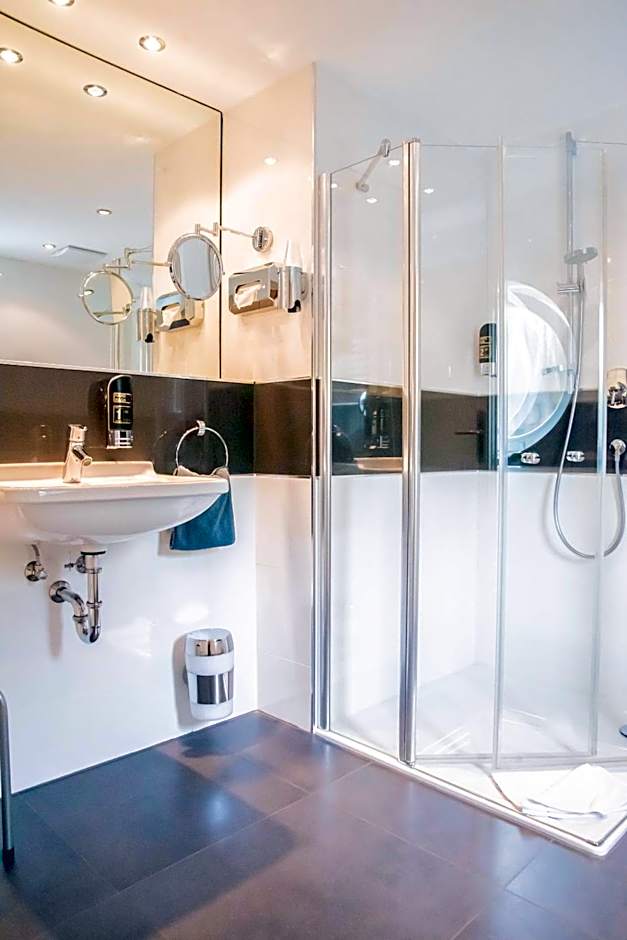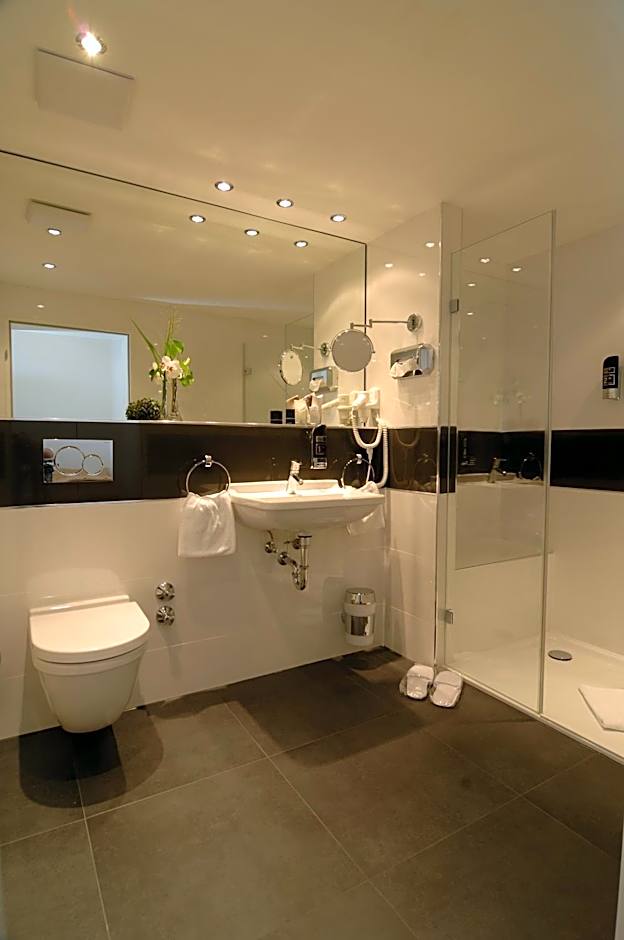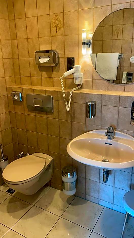 I had an excellent experience mostly with the hotel, but once in the restaurant (both are dog friendly). I was lucky enough (and very grateful) to be upgraded to one of the rooms in their adjacent, newer building (just across the road). Entry to this building is secure and can only be accessed by your room's keycard (which also allows access to the reception area in the older building). This new building also features a small, modern elevator to get to the upper floors...handy for me as was on the top floor. The upgraded room I was assigned to was immaculately clean, very spacious (bathroom too), and furnished with modern furniture, bed, and large flatscreen TV (Netflix app is available). It was an open planned designed with lounge/sitting room combined with the bedroom (containing a very comfortable, soft yet supportive, King mattress). The lounge area contained a sofa bed and matching chair, plus a sitting chair. The room also contained a desk with a chair, a small mini-bar fridge (stocked with drinks and snacks), a large mirrored wardrobe, and a luggage rack, with two bedside tables next to the bed. Heating was provided by either an air-conditioner or by two separate water radiators - these radiators performed very well. The two large windows had curtains and electric outdoor blinds for privacy at night. The bathroom was very bright and well lit, had a heated floor and towel rack, large vanity mirror, and a large walk-in shower (excellent water pressure and hot water supply). As I had to extend my stay twice, the last few nights I had to move to another room. This was much smaller (bathroom as well), but the quality was still the same, as to the cleanliness. The only downside to this other room is that the TV did not feature the Netflix app (and the vast number of channels available were mostly in German....or German dubbed). Both rooms and throughout the property (and between buildings) had good WiFi with a constant and strong connection.