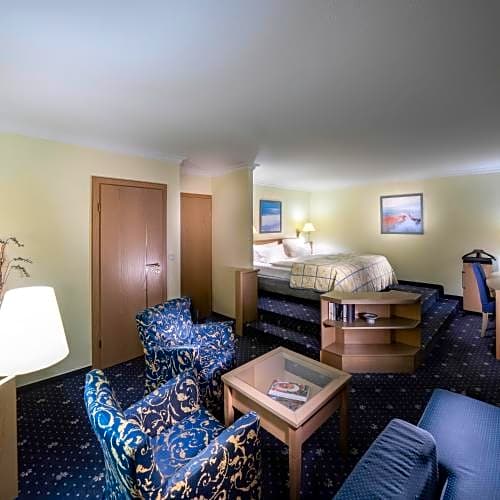 Address: Duhner Strandstraße 5-7, Cuxhaven, Germany — a beachfront property about from the city center. A diverse range of rooms is available, from Studio for single use to Sea View and Balcony options, including Suite with Sea View, Junior Suite with Balcony and Sea View, Standard and Superior varieties, and more.