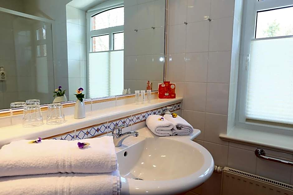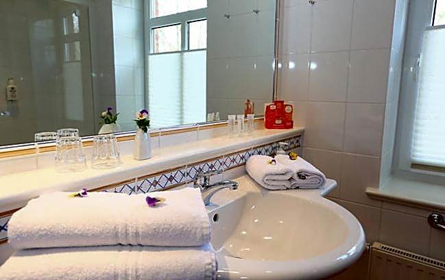 Providing free toiletries, this double room includes a private bathroom with a walk-in shower, a bath and a hairdryer. The double room provides a flat-screen TV with satellite channels, a seating area, a wardrobe, parquet floors as well as garden views. The unit offers 1 bed.