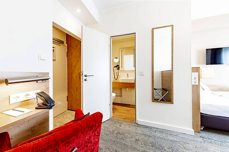 After a day of exploring the bustling city of Frankfurt, retreat to the comfort of the Maingau Hotel's cozy rooms. Choose from a variety of room types to suit your needs and preferences. The Family Room with Bath is perfect for larger groups, accommodating up to 4 adults and 2 children. It features a sofa bed and a queen-size bed, ensuring everyone has a comfortable place to rest. For couples or solo travelers, the Standard Double Room offers a queen-size bed and a charming space to relax after a long day.