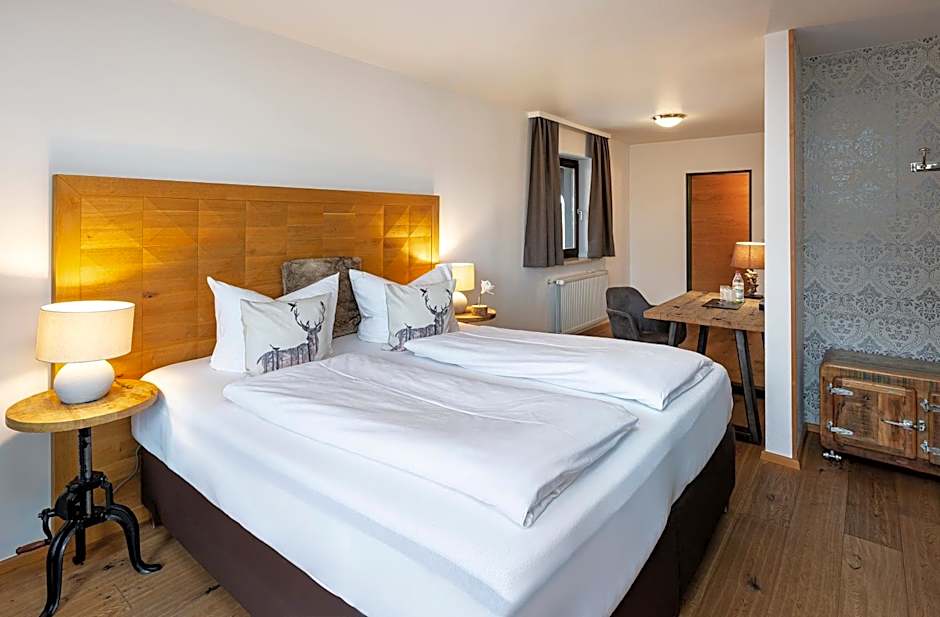 East-, South- or West-facing room with a view of Hopfensee Lake and the Allgäu Alps. The rooms either feature views of the lake and the mountains or feature views of the mountains. Additional features include a work desk, cable TV and a private bathroom. Some rooms have a refrigerator.