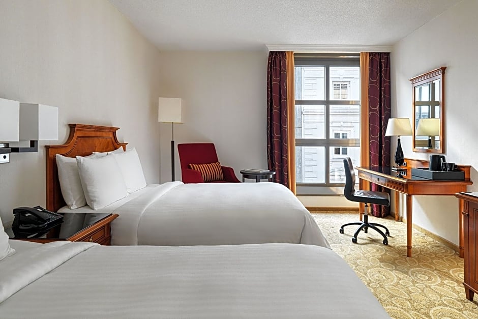 Upon arrival, guests can expect to be greeted by a 24-hour front desk and enjoy a comfortable stay in one of the hotel's non-smoking rooms. The Hamburg Marriott Hotel offers a range of amenities, including complimentary Wi-Fi, a fitness center, and an indoor swimming pool. Relaxation is also a priority here, with a sauna and terrace available for guests to unwind. For those traveling with children, the hotel provides a kid-friendly buffet and offers kids' meals upon request.