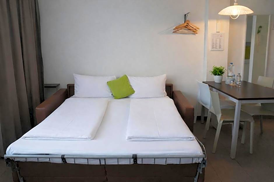 Studio features a fully equipped kitchen, a bedroom, a modern bathroom and international TV channels. Two guests can also be accommodated on the sofa bed.
