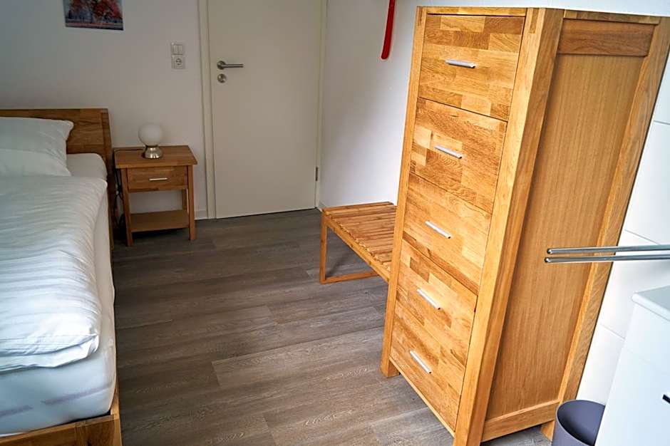 Providing bathrobes, this twin room includes a shared bathroom with slippers. The twin room provides a washing machine, a tea and coffee maker, a wardrobe, heating and a flat-screen TV with satellite channels. The unit offers 2 beds.