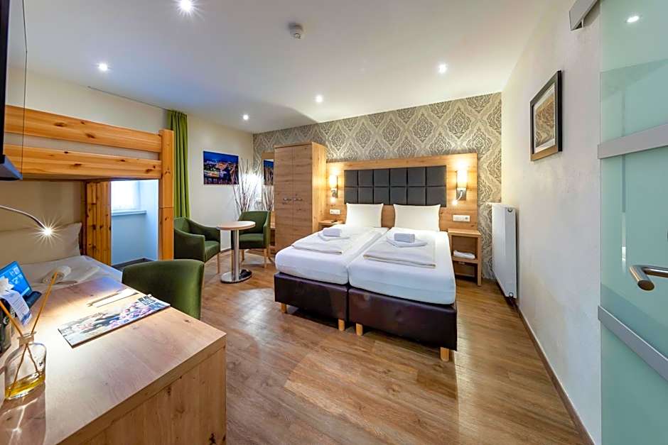 This family room is equipped with a bunk bed (2 x 3 ft) and a 5.9 ft wide double bed with two mattresses. It features a wardrobe, heating and a flat-screen TV with satellite channels. This room has private bathroom with a walk-in shower and a hairdryer. Free toiletries are provided.