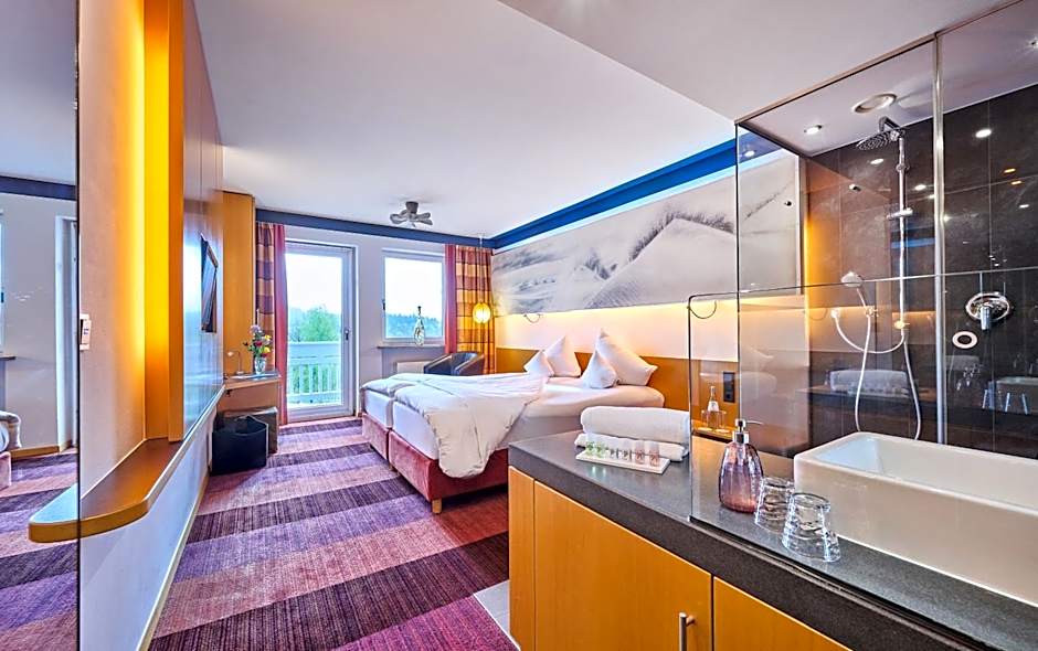 The Hotel Wutzschleife offers two types of rooms: Feel Free Style Rooms and Lifestyle Rooms. Both rooms are double occupancy and do not allow smoking. The Feel Free Style Room is 215 sqft with 1 Queen size bed and 2 Twin beds. The Lifestyle Room is larger at 431 sqft and also has 1 Queen size bed.