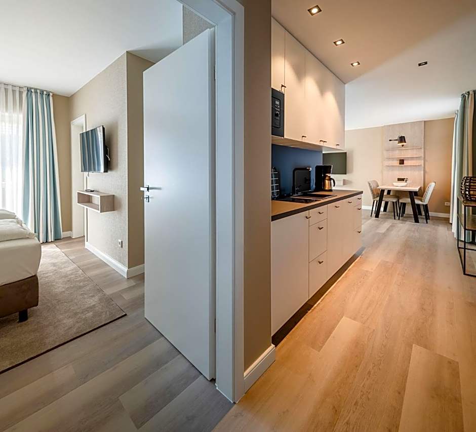 The Hotel am Schlosspark garni offers Comfort Double Rooms and Junior Suites. Comfort Double Rooms are non-smoking and have a queen-size bed, accommodating two adults and one child. The Junior Suites are also non-smoking, with a sofa bed and a queen-size bed, accommodating three adults and two children.