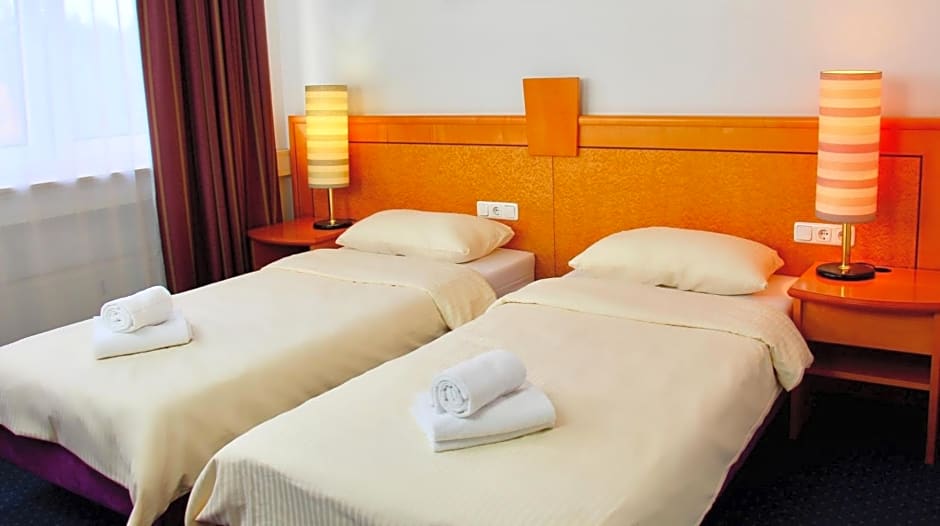 Close to the city bypass, convenient as a transfer overnighting. Quiet area. Spacious room, ideal for family with kids (separate bedroom for kids). Parking at hotel.