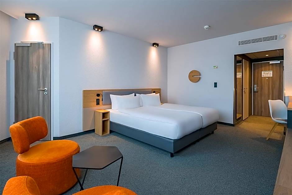 The double room features a private bathroom, air conditioning, a tea and coffee maker, as well as a seating area with a flat-screen TV. The double room provides a TV, a safe deposit box, a carpeted floor and heating. The unit offers 1 bed.