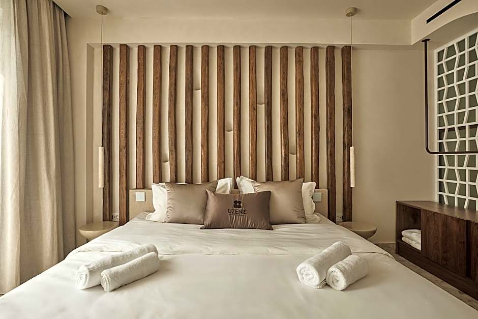 Within the resort's friendly and welcoming atmosphere, you'll find it easy to feel at home. The 24-hour front desk is always ready to assist with any needs, and the free amenities like Wi-Fi, beach chairs, umbrellas, private parking, and kids' garden make your stay smooth and enjoyable. Whether you're lounging by the outdoor saltwater pool with breathtaking views or exploring the charming surroundings of Adelianós Kámpos, Uzenie All Suites Boutique Resort promises a fun, convenient, and authentic Greek holiday experience for travelers of all ages.