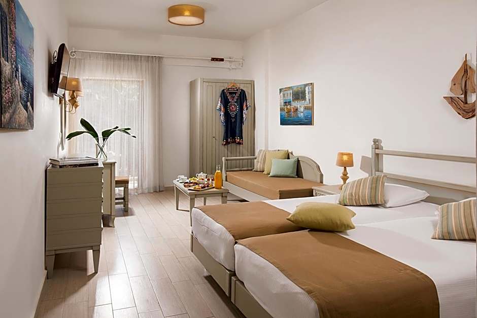 Nestled just a stone’s throw from the shimmering shores of Almirida, the 4-star Almyrida Resort offers a perfect blend of relaxation and excitement on the beautiful Greek island. Imagine waking up to stunning sea views, stepping outside to find the beach just 0 миль away, and starting your day with a refreshing dip in the outdoor swimming pool, which is absolutely free for guests. With a range of top-notch amenities like a wellness spa, Turkish bath, and a fully-equipped fitness center, you'll find plenty of ways to unwind or stay active during your stay.
