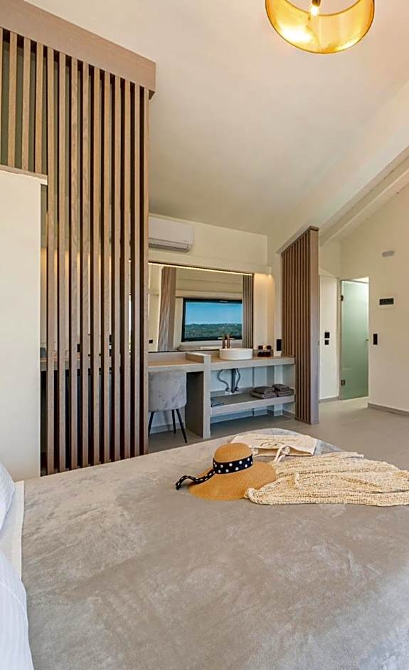 Large modern suite with balcony and sea/pool view in 1st floor, including living room sofa/bed (sleeps a child), and an espresso machine. Please note that this apartment features 2 air conditioning units and guests can use both.