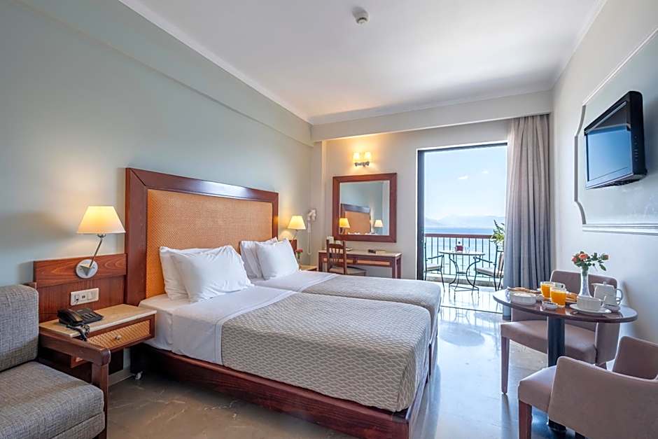 Decorated in earthy tones, this air-conditioned room opens to a private balcony with Aegean Sea views. A satellite TV and fridge are provided.
