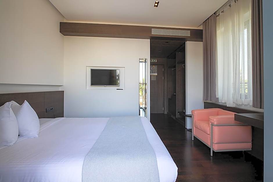 Offering garden views, this spacious suite consists of 2 separate rooms connected by a hall. Contemporary decorated, with modern equipment & facilities, presents beautiful overview to the gardens and the private pine copse of the Hotel.Enjoy free espresso with in-room espresso maker, or take advantage of the fully loaded mini-bar.