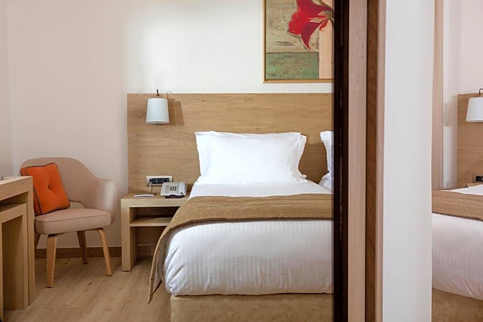 The Golden Age Athens Hotel offers a variety of room types to accommodate different preferences and travel needs. The Family Suite is perfect for those traveling with children, as it comfortably accommodates up to four adults and one child. Featuring two twin beds and one double bed, this spacious suite provides ample room for the whole family to relax and unwind. For a more luxurious experience, the Executive Suite offers a Queen-size bed and a room size of 484 square feet. Couples or small families can opt for the Junior Suite, which can accommodate up to three adults and one child. With its comfortable sofa bed and Queen-size bed, this suite provides a cozy retreat after a day of exploring Athens. Those seeking a more intimate setting can choose the Superior Double Room, which offers a Queen-size bed and a room size of 280 square feet. Finally, the Urban Chic Double or Twin room is perfect for friends or siblings traveling together, with its double bed and two twin beds. Whichever room you choose, you can expect comfort, style, and a great night's sleep at the Golden Age Athens Hotel.
