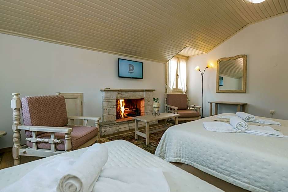 The fireplace is a top feature of this triple room. Featuring free toiletries and bathrobes, this triple room includes a private bathroom with a bath, a shower and a bidet. The unit has a wardrobe, mountain views, a terrace and wine/champagne is available for guests. The unit has 2 beds.