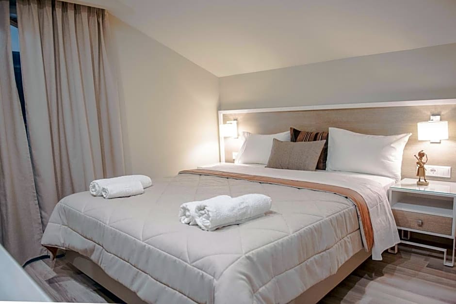 This bright modern room opens to balcony that faces Mount Olympus. Air conditioning is provided.