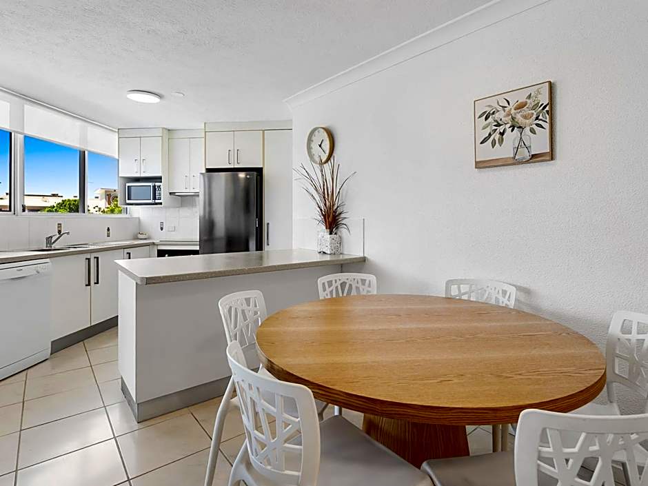 This apartment offer a queen bed or 2 single beds. Please specify your bedding preferences when reserving.
