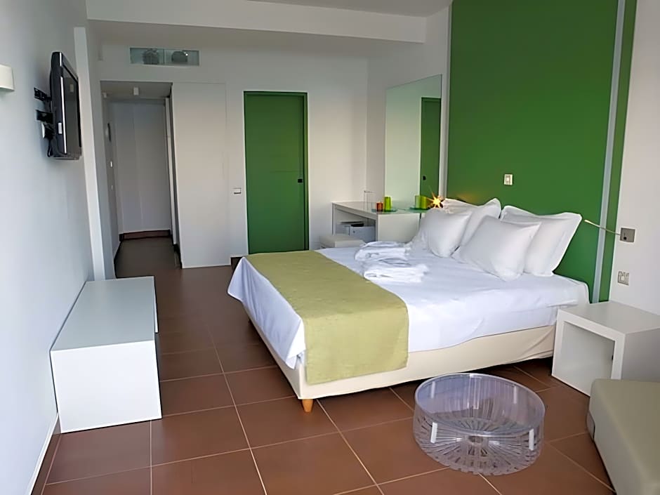 Set on the hotel's central building, this room features a double bed or twin beds, a bathroom with a bath or shower and a furnished balcony. Basic double rooms offer views of the pool and the sea.