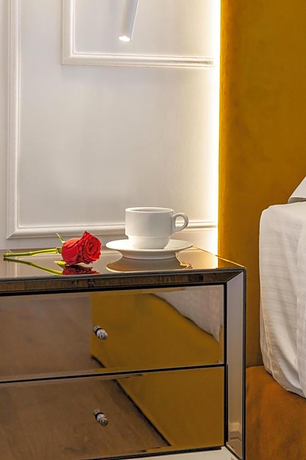 Designed with honeymooners in mind, this room type is fully renovated and features a modern decoration. It is located on the first/middle floor, has a bathroom with rain shower and a central balcony facing the garden or the old town. For a stay over 2 nights, the hotel offers roses in the room and a bottle of sparkling wine.