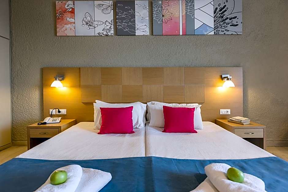 Two dining venues keep the evenings lively: the Main Restaurant, a Modern setting serving Greek and International dishes, and the Cooee Bistro, offering Greek, Mediterranean, and International flavors. Free live music in the evenings adds a cheerful soundtrack to seaside meals, while direct beach access and views of the garden or landmarks set a postcard-perfect backdrop for sunset strolls.