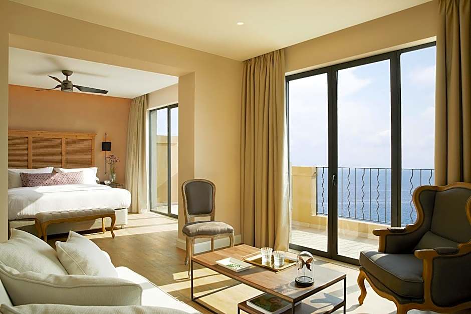 This junior suite opens to a 36-m2 terrace with jetted tub, sea view and an outdoor seating area. It offers: