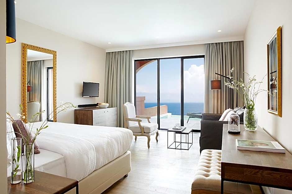 Boasting an outdoor private pool, this junior suite opens to a 15-m2 terrace with sea view and sun loungers. It offers: