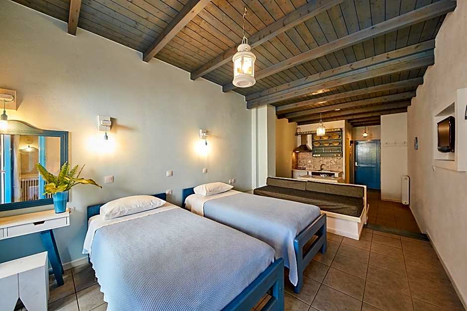 Pets are allowed on request, with no extra charges, making it easy to bring along furry friends. On-site dining is provided by the Greek restaurant ΜΥΛΟΣ, offering traditional Greek dishes in a traditional ambiance.