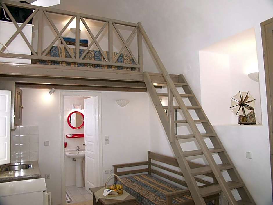 This studio consists of one bedroom with double bed, one bathroom and private balcony or terrace overlooking the Aegean Sea and the volcano.