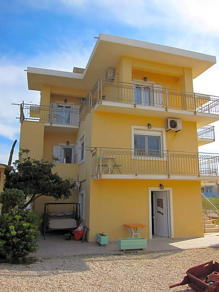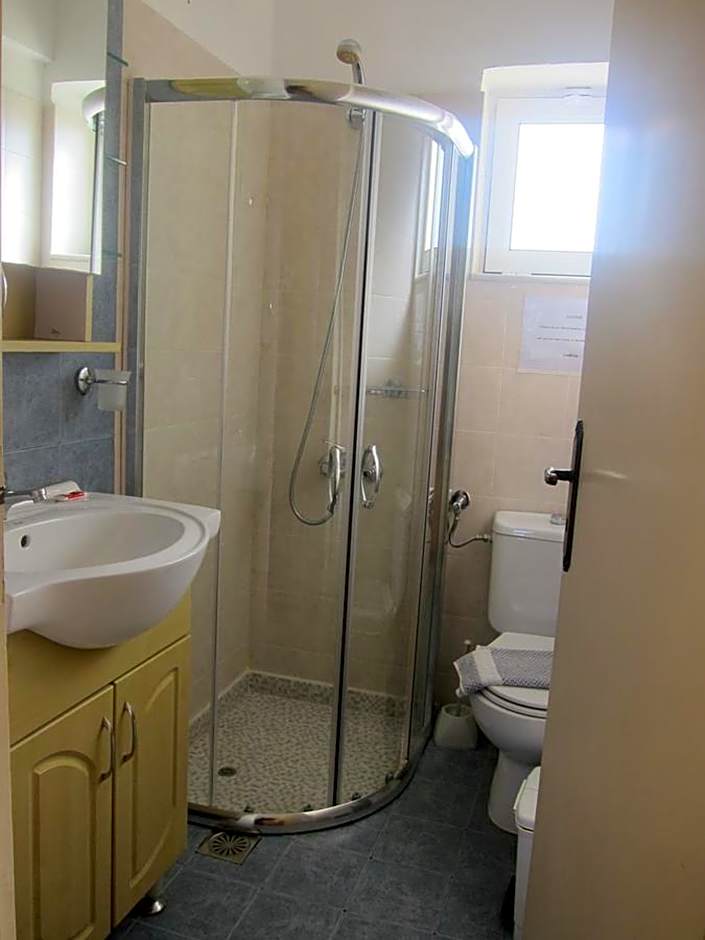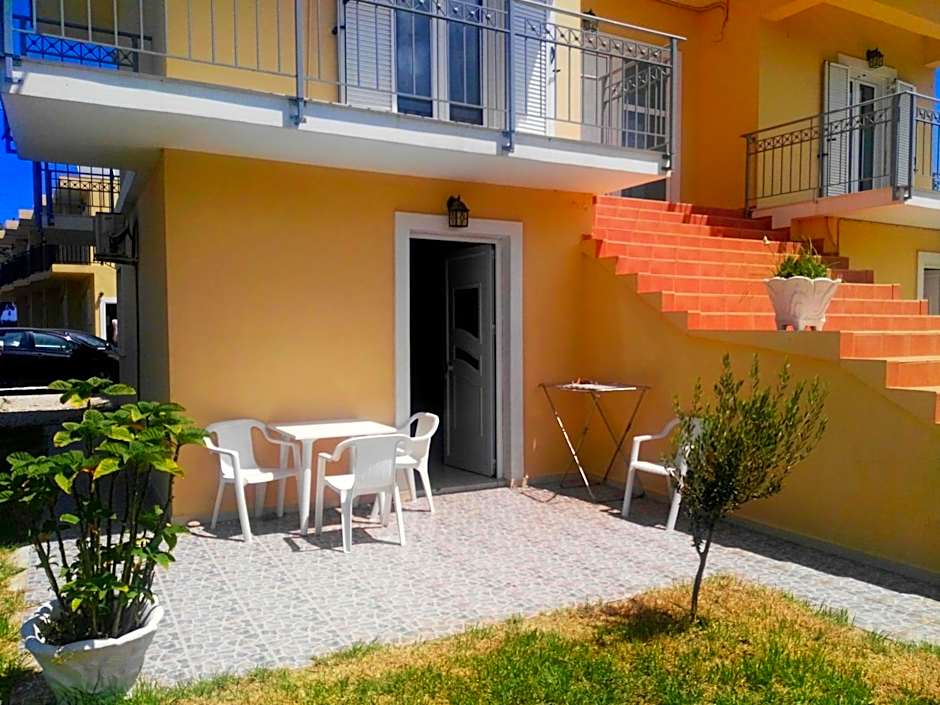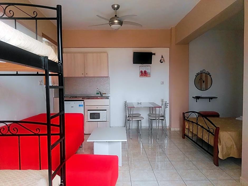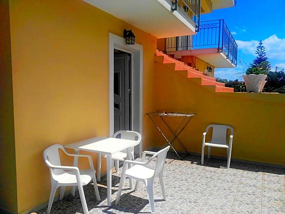 Maria and Costas (and the two generations of their family on either side) were so wonderful and welcoming, we couldn't have been made to feel more at home. They are such generous and lovely proprietors, nothing feels like too much to ask, I was totally blown away. We ate our evening meal out a few times but only wanted to come back to the restaurant at Baladinos because the delicious food there is prepared with love, because it is basically their family kitchen too, and it felt like we were eating in their home. Don't expect to see a menu anywhere. Costas and Maria will give you a verbal run down of all the dishes they have freshly prepared that day and you can choose from vegetarian and meat options, slow cooked, oven cooked and grilled - they have salads, ice cream and a bar too. A great sign is that so many locals choose it as their spot for an evening drink and a meal, or a weekend hang out. The room was a simple set up and had plenty of space form my son and I to enjoy our stay. It was cleaned every day which was great. The kitchen is enough to prepare a simple meal from, so we made breakfasts and our own lunches, but ate the delicious breakfast in the restaurant whenever we felt like it too. Baladinos Apartments is literally ON the beach, it's idyllic, we spent every day hanging out there. We could borrow an umbrella for the beach, which was great - beware the wind - umbrellas not always practical. We would love to return if we can!