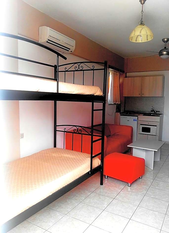 Welcome to Baladinos Apartments, a delightful two-star apart hotel nestled in the charming village of Geráni, Greece. Just a short 0.7mi from the vibrant city center, this hidden gem invites you to bask in the warmth of Greek hospitality while being steps away from the stunning beach. Whether you're a solo traveler or bringing the whole family, you'll find everything you need for an unforgettable stay, starting at an affordable price point.