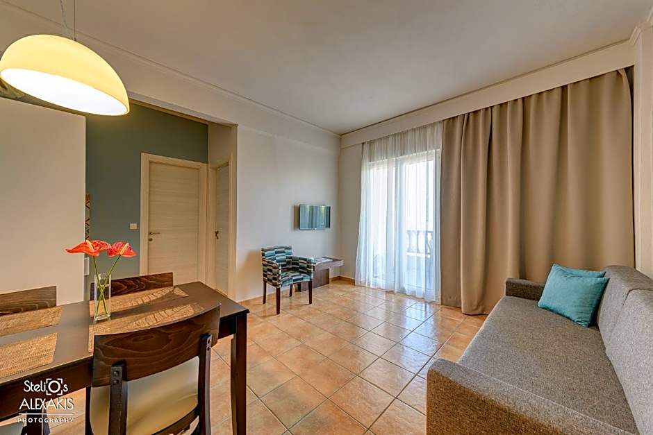 Offering a balcony overlooking the pool and partially the sea, this spacious suite includes a seating area and fully equipped kitchenette. The bathroom is fitted with a shower.