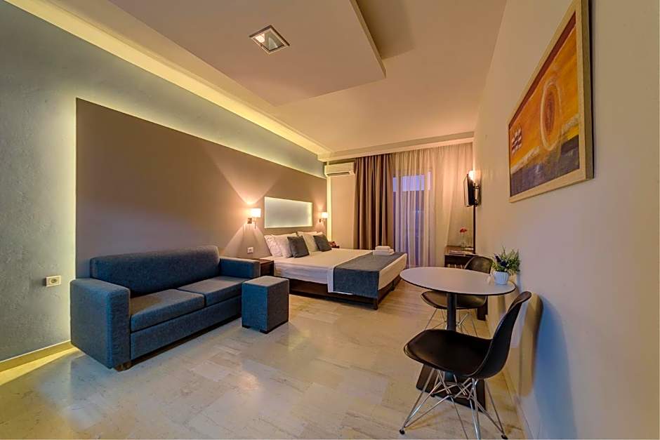 A range of accommodations awaits, from Suite, Seafront and Maisonette, King, Garden View to Apartment, Sea View and various Studio options with sea or garden views. For example, Suite, Seafront sleeps 2 adults and 1 child with 1 King bed and 2 Sofa Beds; Maisonette, King, Garden View fits 4 adults and 2 children with a King bed plus two Sofa Beds; Studio, King, Garden View accommodates 2 adults and 2 children with a King bed and a Sofa Bed; Apartment, Sea View sleeps 2 adults and 1 child; Studio, Sea View fits 2 adults. This variety makes it easy to find a comfortable setup for couples or families.