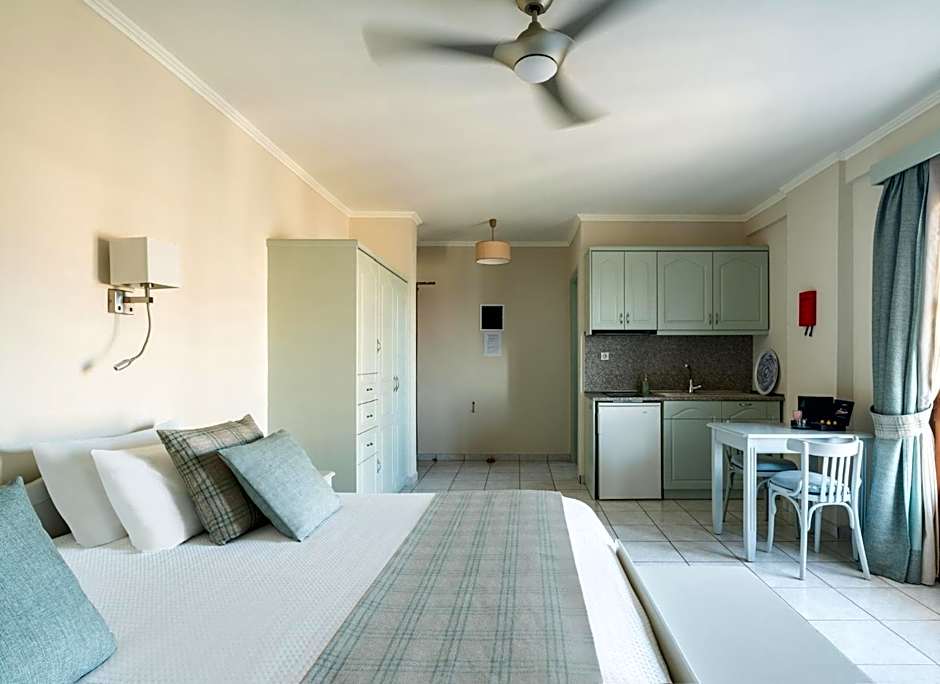 Enjoying full views of the Messinian Gulf from its balcony, this traditionally decorated studio is just 66 feet from the beach. It offers: