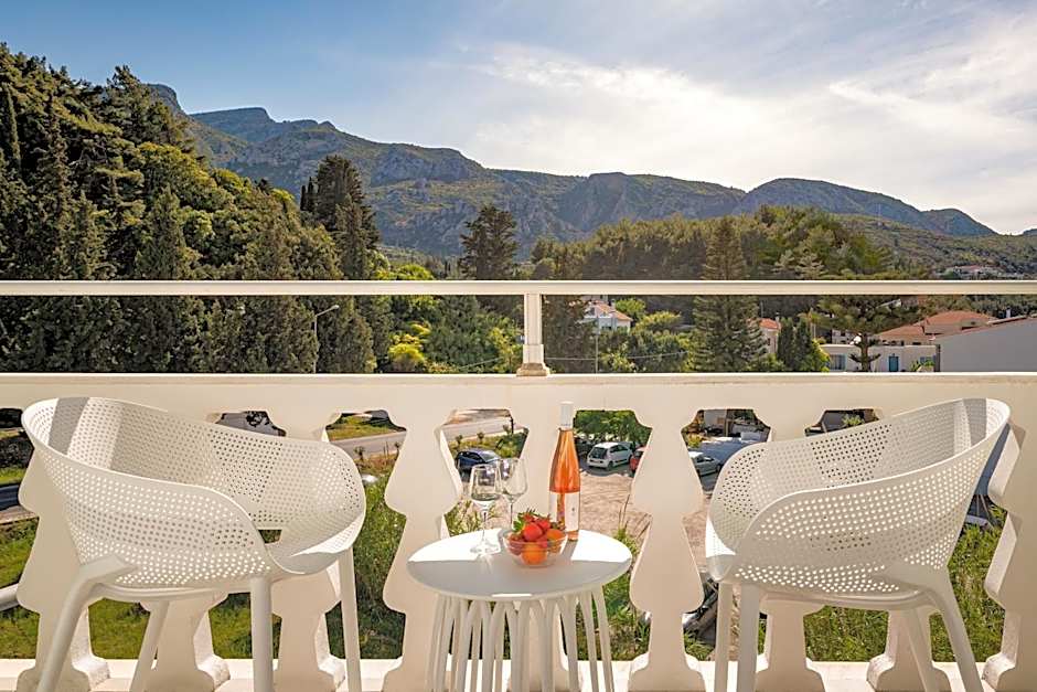 Overlooking the Aegean Sea, the pool or the garden from its private balcony, this air-conditioned room is just 49 feet from Kokkari Beach. A fridge and a TV are featured.