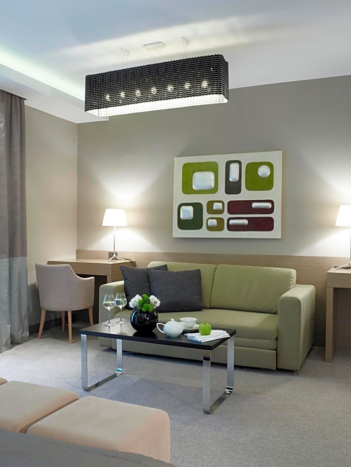 Featuring a living area, this spacious, minimally decorated suite includes: -satellite LCD TV -coffee maker -mini-bar -safety box -modern bathroom with hairdryer and exclusive toiletries.