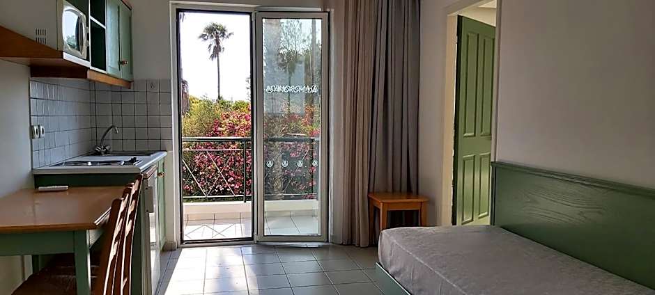 Air-conditioned studio with a veranda, a well-equipped kitchenette to prepare lights meals or breakfast, with dining area, fridge and microwave, and a private bathroom with shower or bathtub. A safe and a TV with satellite channels are available. It offers views to the countryside or the garden. Please note that this room does not provide pool or beach towels.